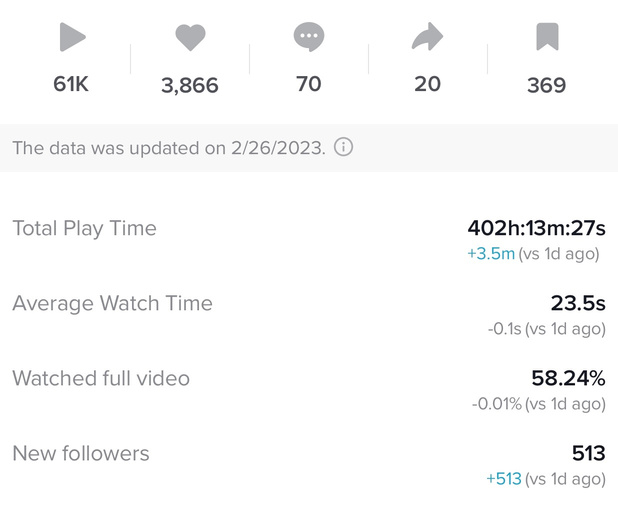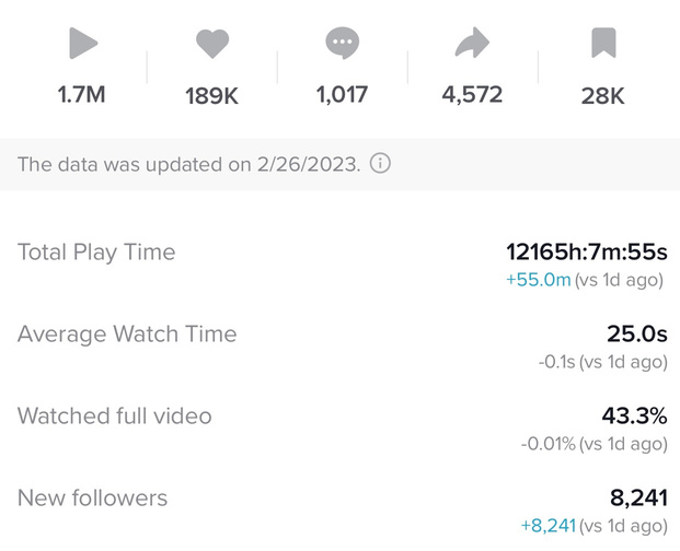 (Stats are from my personal Tiktoks. These stats are NOT past ugc collaborations. These stats just show that I can target large audience)